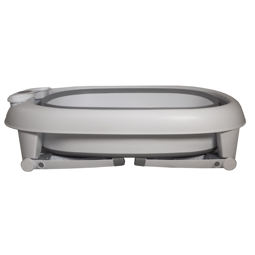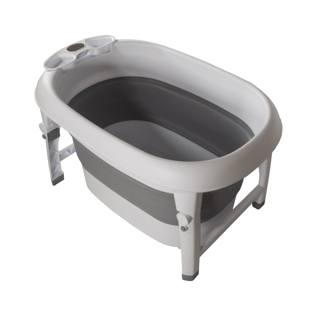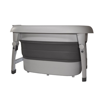 Det rummelige og foldbare 100 liters badekar kan bruges lige fra fødslen og til barnet bliver for stort til badekarret. Badekarret kan let foldes sammen og pakkes væk, så du kan spare plads på badeværelset. Skamlen med sugekopper er ideel til større børn, så de har noget at sidde på. Skamlen kan bruges fra dit barn er i stand til at sidde selv uden hjælp. Hvis du bruger badekarret til en nyfødt eller en baby, kan det være en fordel at tilkøbe en badestol. Så kan du have begge hænder fri, når barnet bader. Benene er skridsikre, så badekarret ikke glider.