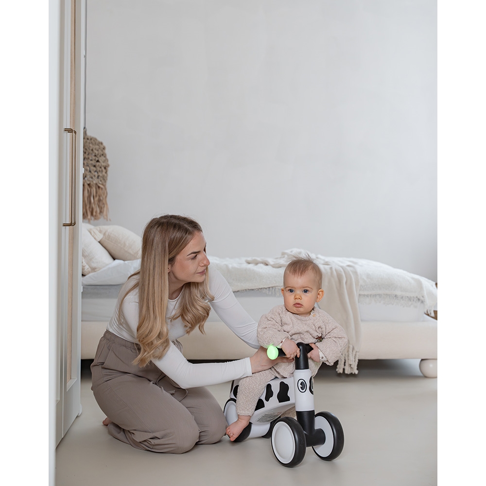 Stilfuld og robust balancecykel til børn fra 1 til 5 år (max 25 kg). Cyklen er uden pedaler og hjælper barnet med at udvikle balance og koordination, før det lærer at cykle rigtigt. Let stel, komfortabel saddel og sikre håndtag giver god støtte til de små. Med sjov lyseffekt i styret, der aktiveres ved berøring. Perfekt til legepladsen eller haven – men altid under opsyn.
