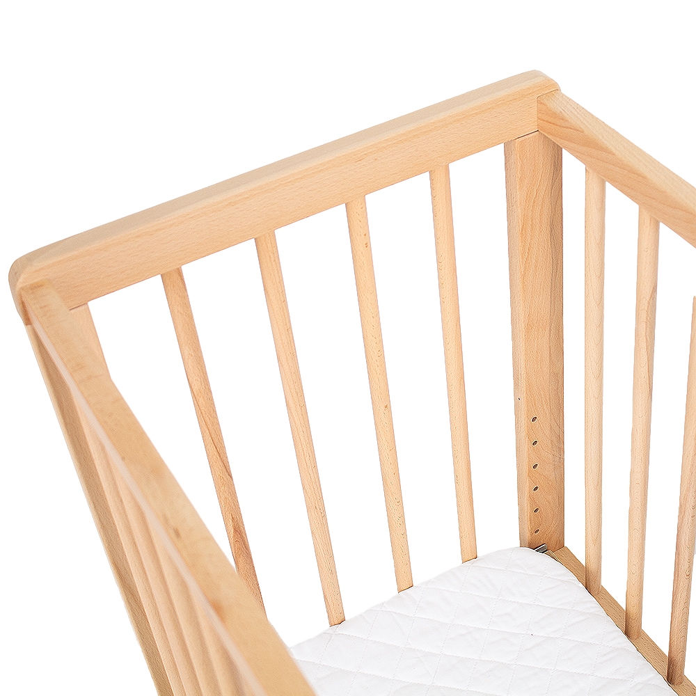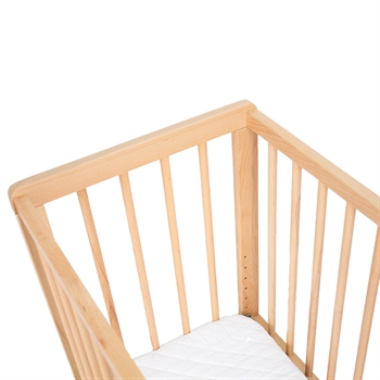 BabyTrold Bedside Crib i natur er en rigtig praktisk seng i barnets første levemåneder, da den placeres helt tæt på forældrenes seng, så der er mulighed for den nære kontakt, samtidig med at barnet sover i egen seng. Sengen kan indstilles i hele 8 forskellige højdeniveauer (med tæt mellemrum), så den er let at tilpasse til forældersengen. Ved påmontering af en ekstra side, fungerer sengen som en lille tremmeseng, der kan stå separat.