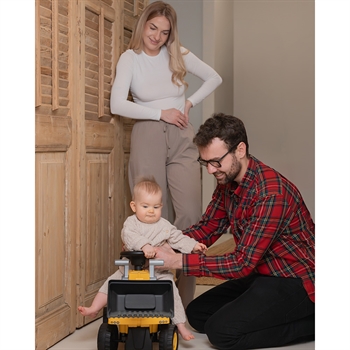 BabyTrold Gravko Gåbil er den perfekte gåbil til små byggearbejdere, der elsker at lege med gravkøer og maskiner! Med sin farverige og detaljerede udformning, der efterligner en rigtig gravko, giver denne gåbil både sjov og spænding for de små, samtidig med at den hjælper med at udvikle deres motorik og balance. Den robuste plastkonstruktion sikrer, at gåbilen holder til mange timers leg, og de brede hjul gør det nemt og stabilt for barnet at køre både indendørs og udendørs. Den lave højde gør det lettere for barnet at sætte sig på og komme af gåbilen, og det enkle styresystem giver barnet fuld kontrol over kørslen. Gravkoens design med bevægelig arm og skovl stimulerer børns fantasi og gør legen endnu sjovere. Gåbilen er ikke kun underholdende, men også en fantastisk måde at hjælpe barnet med at udvikle deres motoriske færdigheder, balance og koordination. Børn vil elske at "grave" sig vej rundt i stuen eller på legepladsen, mens de lærer at styre køretøjet og bevæge sig sikkert rundt.