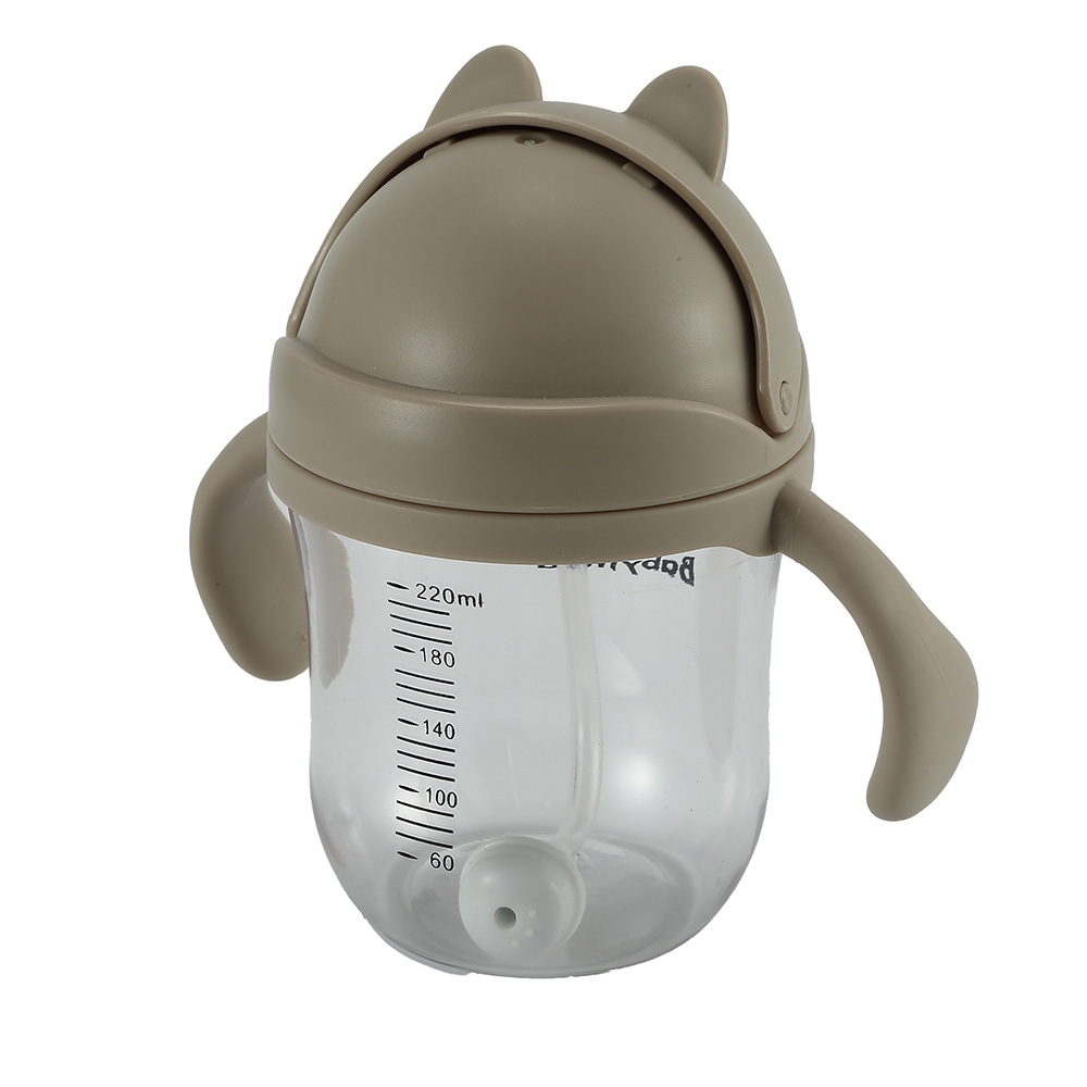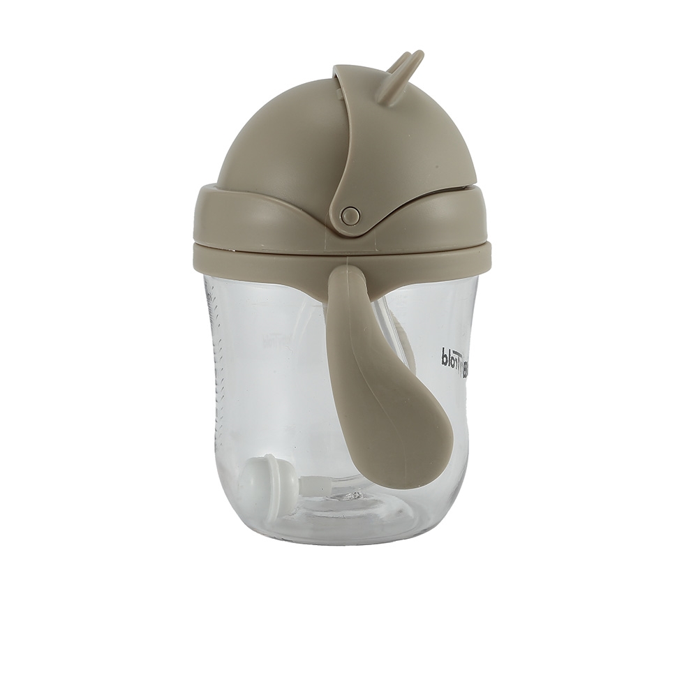 Drikkekoppen er lavet i Tritan materiale, der er 100% fri for BPA. Koppen er lækagesikret og har bløde ergonomisk formede håndtag, der let kan gribes om af barnet. Koppen er designet til at understøtte barnets udvikling ved at lave en nem overgang fra flaske til kop. Den er udstyret med en tyngdekraftskugle for enden af sugerøret, så koppen kan bruges, selv når den vendes på hovedet - bolden vil følge væsken.