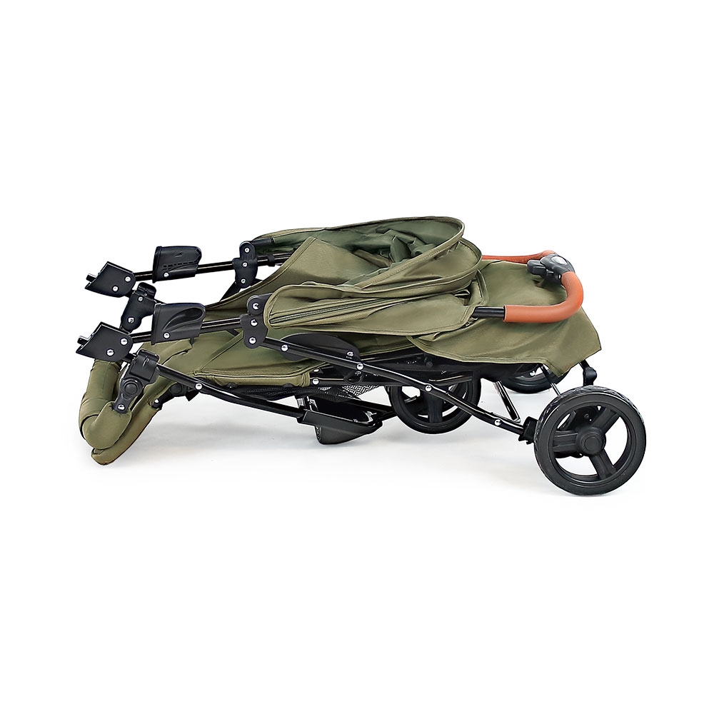 Klapvognen er udstyret med drejelige forhjul, hvilket gør den utrolig nem at manøvrere, selv på trange områder. Bremsen kan let aktiveres ved at trykke ned med foden og låses op ved at vippe bremsen tilbage med foden.
