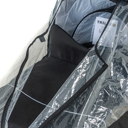 Regnslag til  combivogn. Modellen har  transparent front og refleks (refleks striber og stjernerefleks bag på kalechen). Regnslaget er fremstillet i åndbart PVC-frit nylon, der tillader fugt at passere indefra men hindrer samtidig regnen i at trænge ind i vognen. Slaget har tapede sømme og vandtæt lynlås der kan åbnes på midten ved vognens forlæder. Sørg for at regnslaget altid dækker hele vognen, og er trukket ned over alle kanter. Lad ikke regnslaget sidde på vognen når det ikke regner. Det anbefales at regnslaget vaskes i hånden, eller rengøres med en klud og koldt vand. Det kan evt. lægges i blød i koldt vand. Leveres med opbevaringstaske.