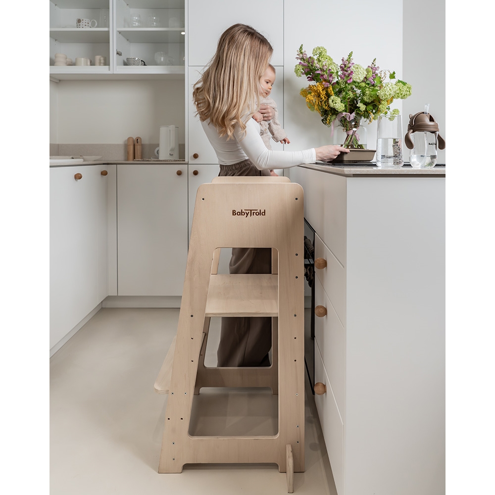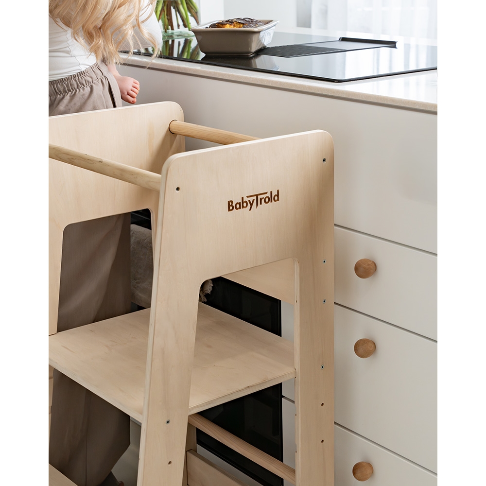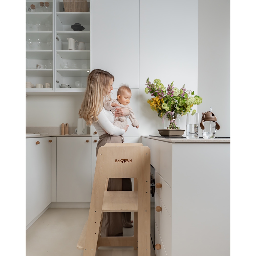 BabyTrold Læringstårn er den perfekte løsning til at lade dit barn deltage i dagligdagens aktiviteter på en sikker måde. Med mulighed for at justere tårnet i 3 forskellige højder kan det tilpasses dit barns udviklingstrin, så det vokser med barnet og kan bruges i lang tid. Designet med fokus på stabilitet og sikkerhed giver BabyTrold Læringstårn dit barn en tryg platform til at udforske og lære, samtidig med at det styrker deres motoriske færdigheder.
