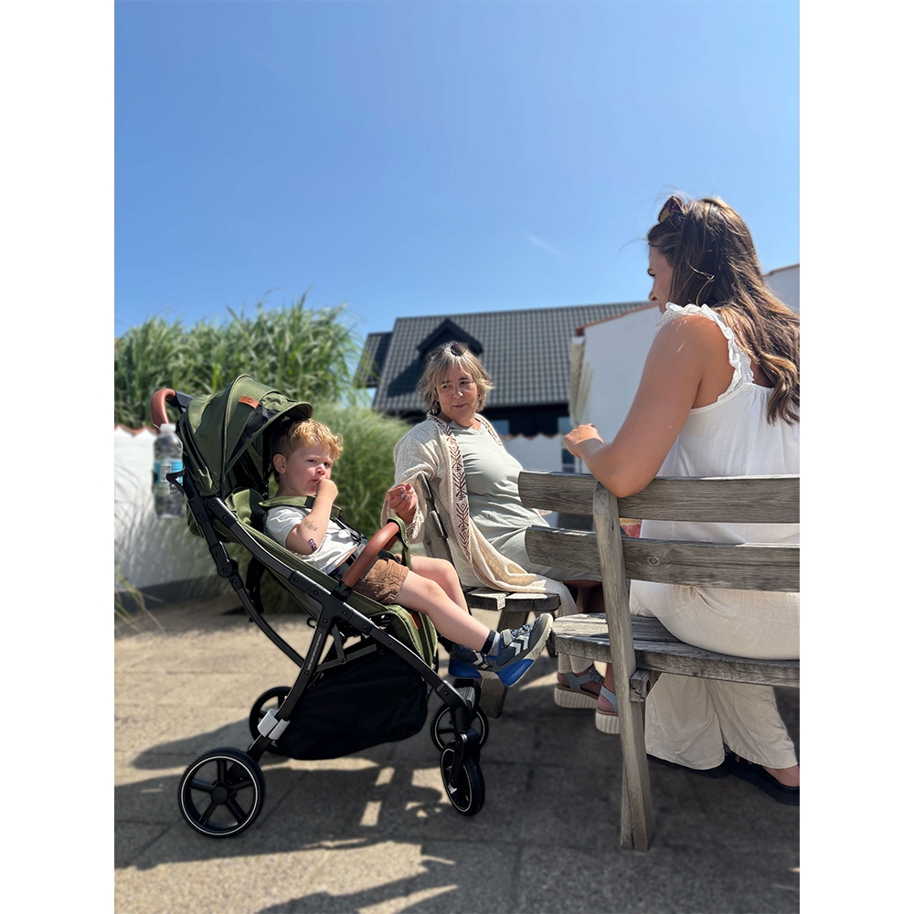 Piza klapvognen foldes nemt sammen med en dedikeret sammenklapningsknap og kan fastlåses med en sikkerhedslås, så du hurtigt kan løfte den ind i bilen eller opbevare den i hjemmet. Uanset om du er på café, i supermarkedet eller tager en tur i nabolaget, er Piza let at manøvrere og praktisk at have med.