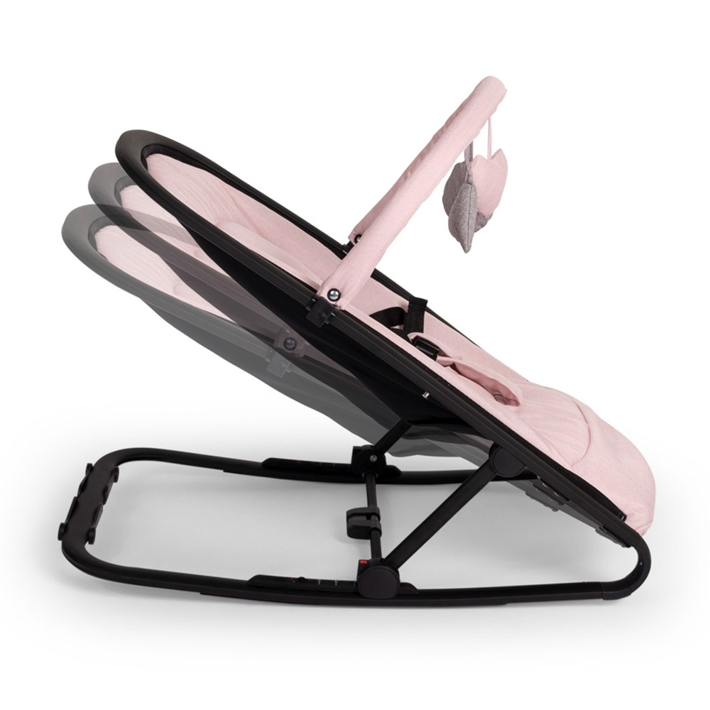 Den lyserøde polstring er behageligt blød og kan vaskes ved 30 °C. Den lette metalramme er nem at justere og udstyret med en dobbelt låsemekanisme for ekstra sikkerhed. Lulu skråstolen kan desuden foldes kompakt sammen, hvilket gør den let at opbevare eller tage med på farten.