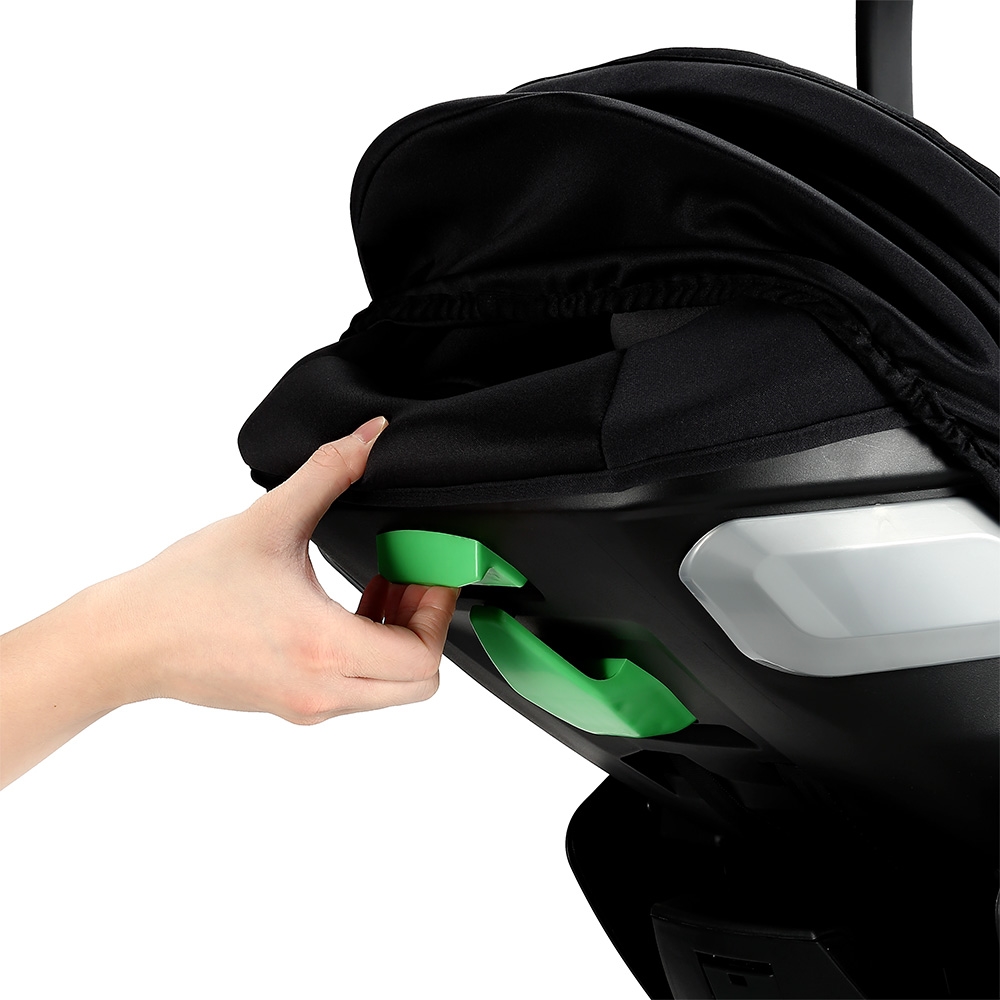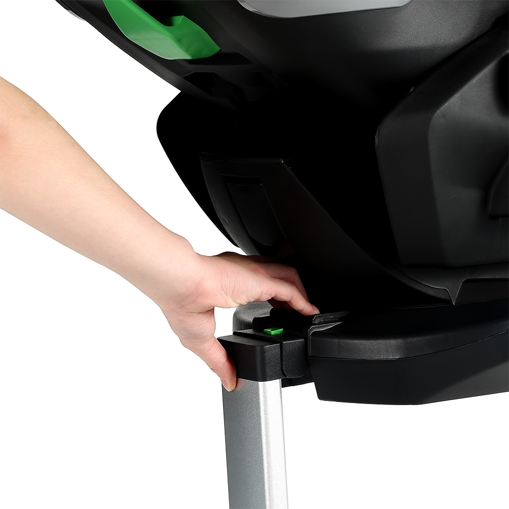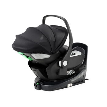 Sædet kan nemt drejes mod bildøren, så du lettere kan spænde eller løfte dit barn uden at belaste ryggen. Basen gør det muligt at montere sædet både bagudvendt og fremadvendt.