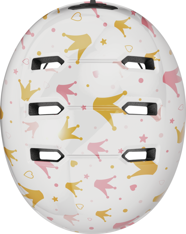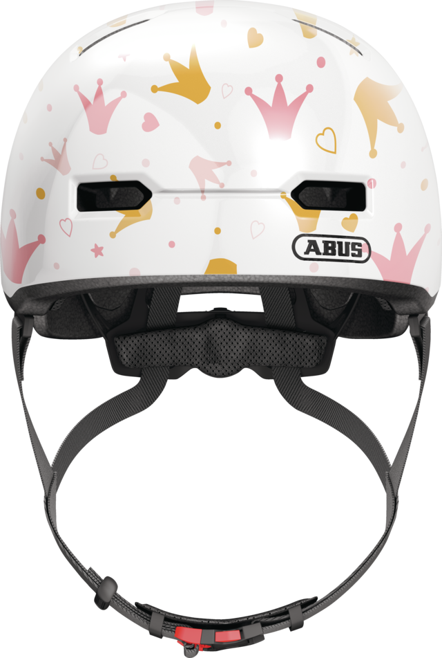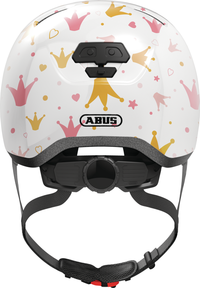 Hjelmen har et brugervenligt justeringshjul i nakken, så den let kan tilpasses barnets hoved og sidder sikkert – uden at gå på kompromis med komforten. Der er også tænkt på børn med langt hår, for hjelmen har plads til en hestehale.
