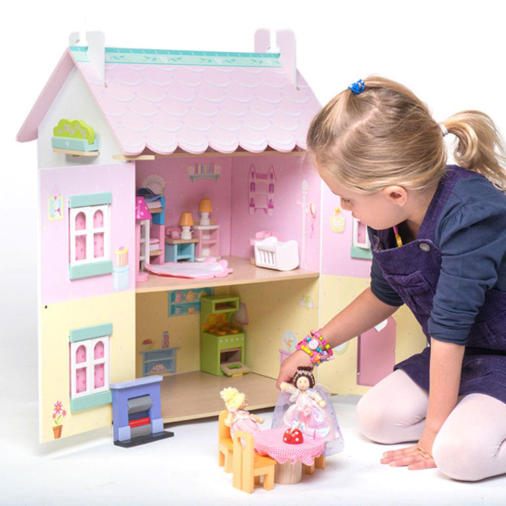 Sødt dukkehus fra Le Toy Van, som indeholder dukkehus samt møbler dertil. Dette omfatter bl.a. køjeseng, spisebord, spisestole, køkken mm.