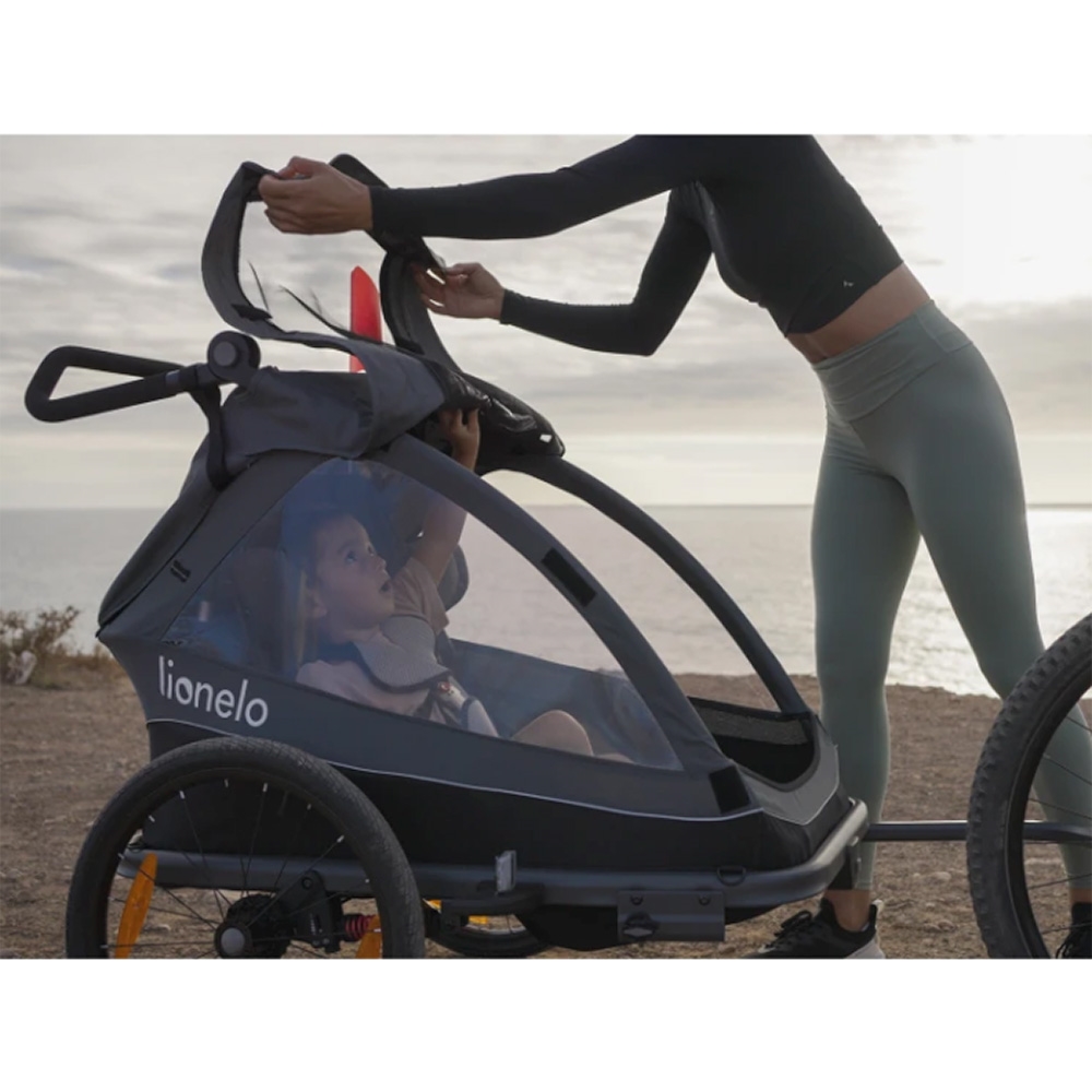 Lionelo Cama Multivogn er et praktisk 2-i-1 produkt, der kombinerer en cykelanhænger og en klapvogn i én løsning. Den avancerede affjedring og komfortable polstring gør den ideel til ture på ujævnt terræn, mens det justerbare styr sikrer en behagelig gåtur i byen. Med det innovative All-Round-Safety system får dit barn maksimal beskyttelse mod stød samt god synlighed i mørke. Den særlige Head+ rygstøtte med åndbart mesh giver ekstra støtte til barnets hoved, hvilket er ideelt når barnet tager en lur undervejs. Anhængeren kan bære op til 22 kg pr. barn og har plads til enten ét eller to børn. Med en bredde på kun 80 cm er den let at manøvrere i byen og i butikker.
