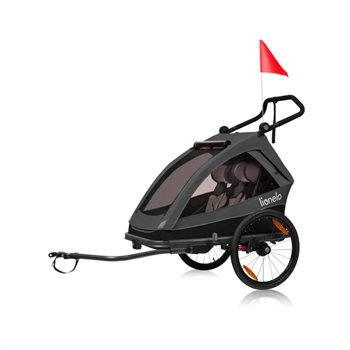 Der medfølger to cykelkoblinger, så anhængeren nemt kan bruges på begge forældres cykler. Det justerbare styr kan indstilles i flere niveauer, så det passer til forskellige højder og giver en behagelig køreoplevelse. Den store opbevaringskurv på op til 60 liter gør det desuden nemt at have alt det nødvendige med på turen.