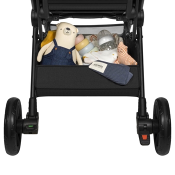 Klapvognen er udstyret med en vandtæt XXL kaleche med UPF50+ filter, som vil beskytte dig barn i vind og vejr. Desuden finder du en stor rummelig varekurv placeret under sædet.