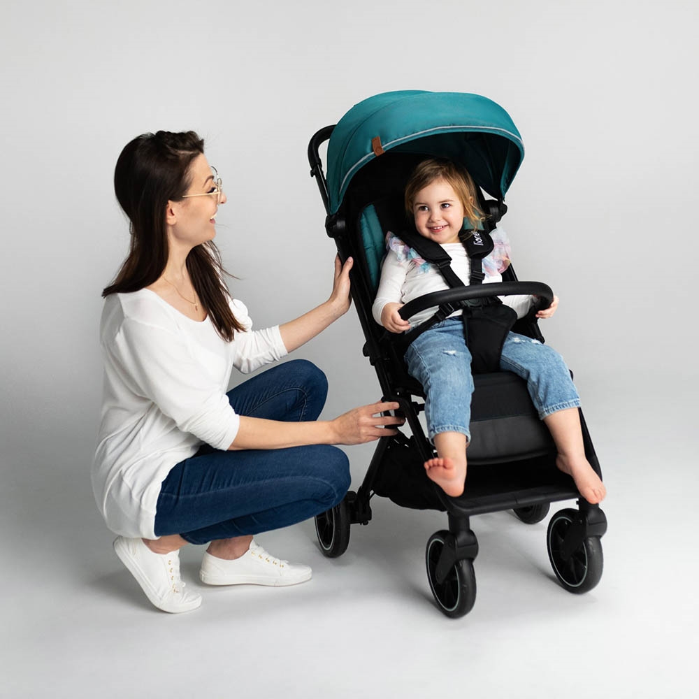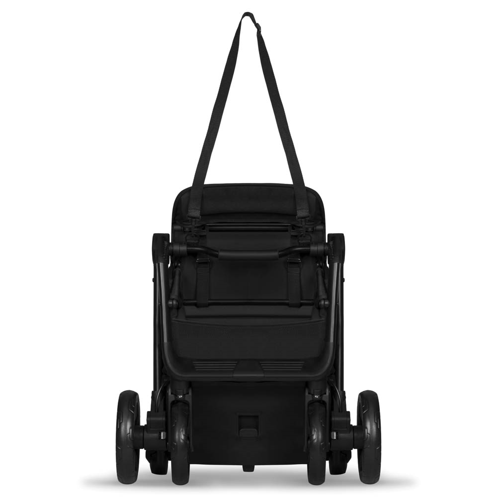 Klapvognen kan nemt klappes sammen, også kun med én hånd. Du kan ligeledes bruge klapvognens automatiske foldesystem ved at trykke på en knap på klapvognen, hvorefter klapvognen klapper sig selv sammen.