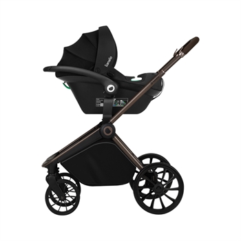 Barnevognen har en vandtæt solskærm (med UPF 50+ filter) og vindtæt betræk. Kassen og klapvognssædet sættes på stellet nemt og enkelt. Stellet er udstyret med drejelige forhjul, som gør vognen nem at køre rundt med. Selve styret kan justeres, så det passer bedst muligt til føreren af vognen. Vognen har også en rummelig varekurv, så der er plads til pusletaske og lignende.