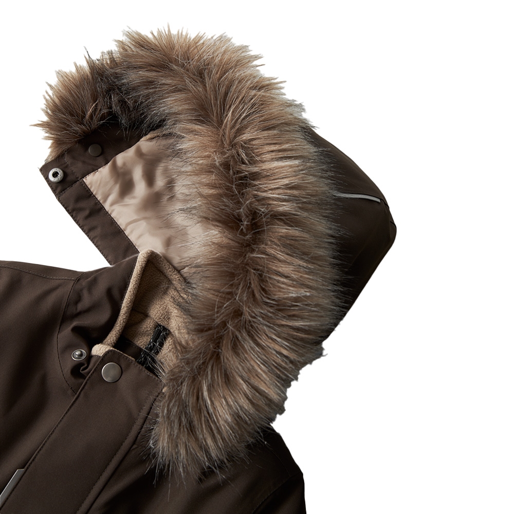 • Detaljer: Dekorative reflekterende detaljer, Aftagelig hætte af hensyn til sikkerheden, Aftagelig syntetisk pelsdetalje , Elastisk talje, Isoleret sædeområde, der holder dit barn varmt, mens det sidder ned udenfor, Lynlåsbeskyttelse for at forhindre, at lynlåsen får fat i huden