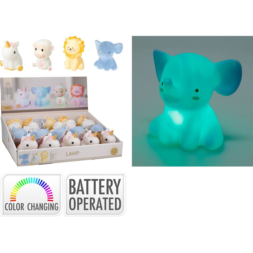 4 assorteret lamper: Elefant, abe, løve, enhjørning