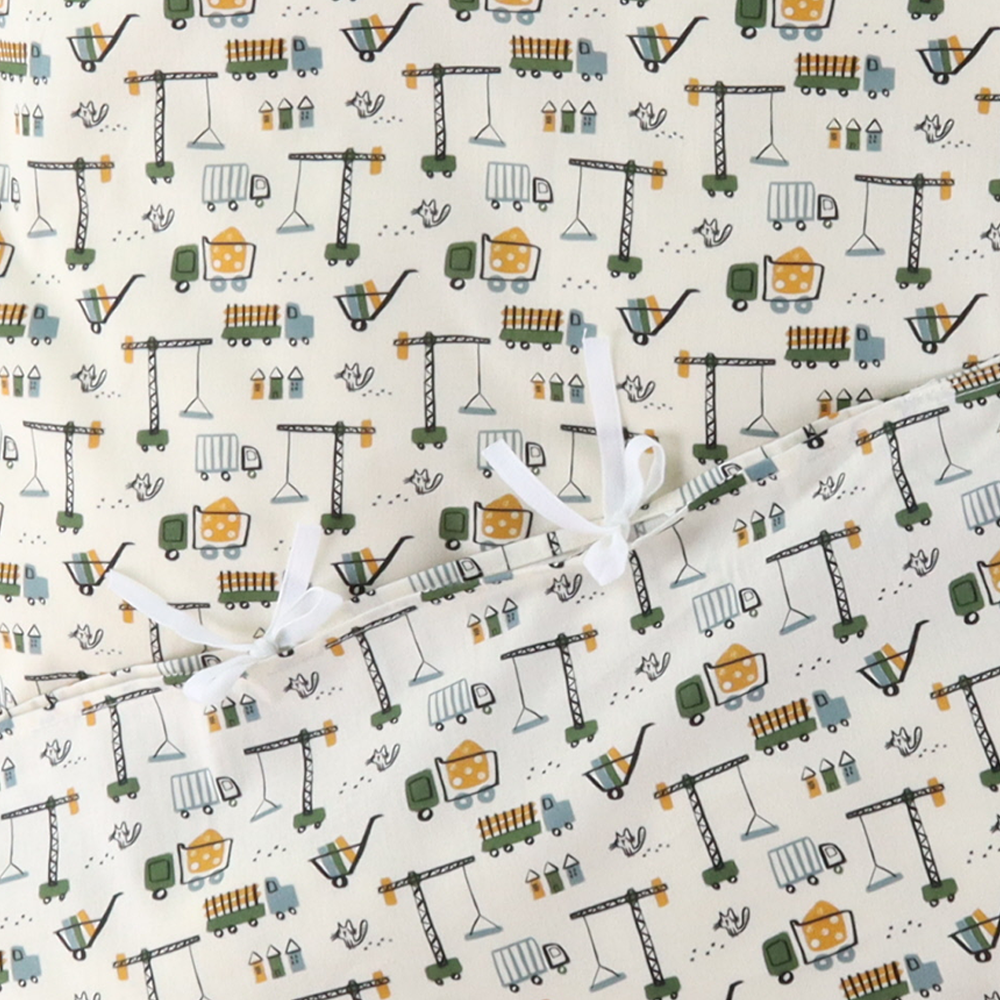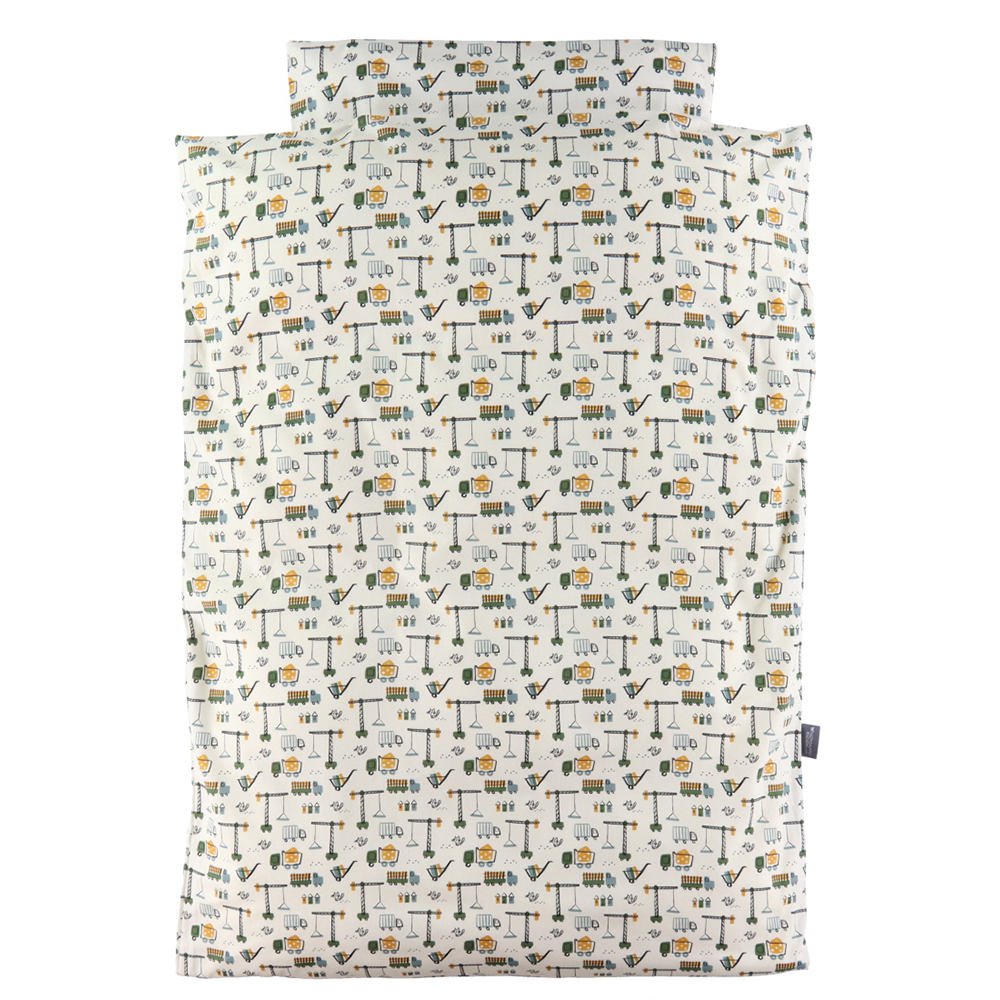 Sengetøj fra Nørgaard Madsen med flot mønster af arbejdsmaskiner. Dette lækre sengesæt er produceret i 100% økologisk bomuld, så det er dejligt blødt og rart at sove i.