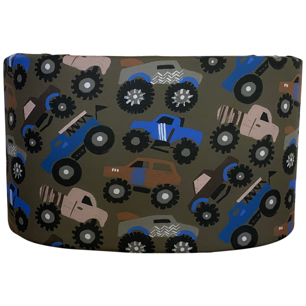 Flot Nørgaard Madsens sengetøj i army grøn med et motiv af store biler.