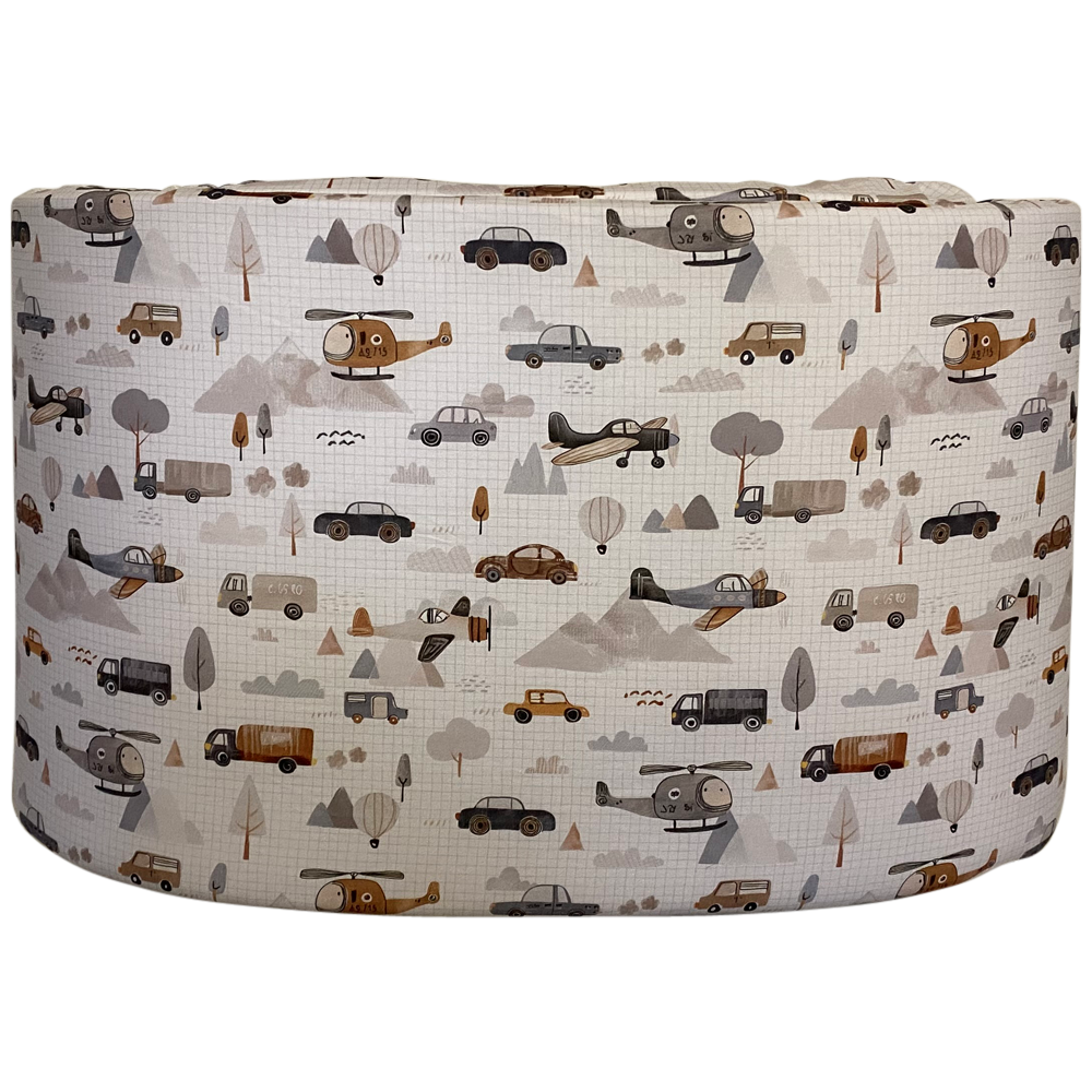 Flot Nørgaard Madsens sengerand i hvid/brun med et motiv af roadtrip