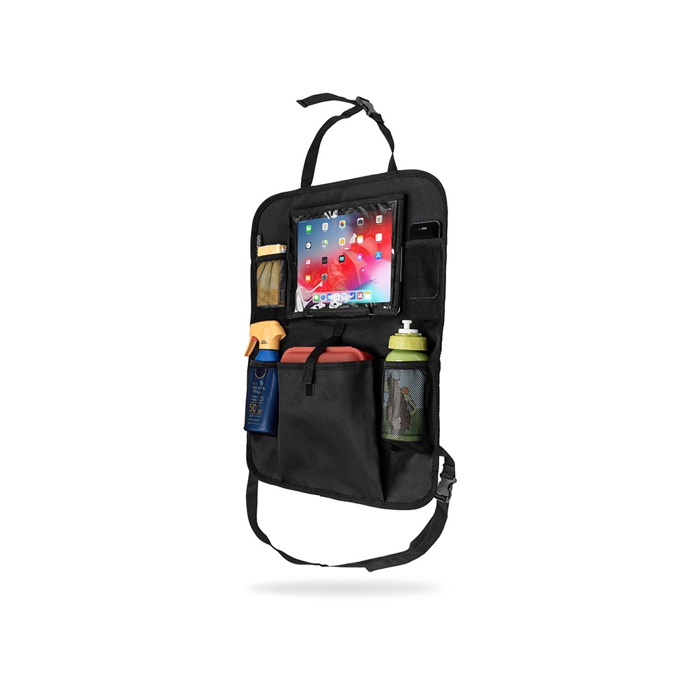 Gør køreturen nemmere og mere organiseret med denne smarte bilorganizer. Med flere praktiske lommer og et gennemsigtigt rum til tablet, monteres den nemt på bagsiden af forsædet og holder alle barnets ting lige ved hånden.