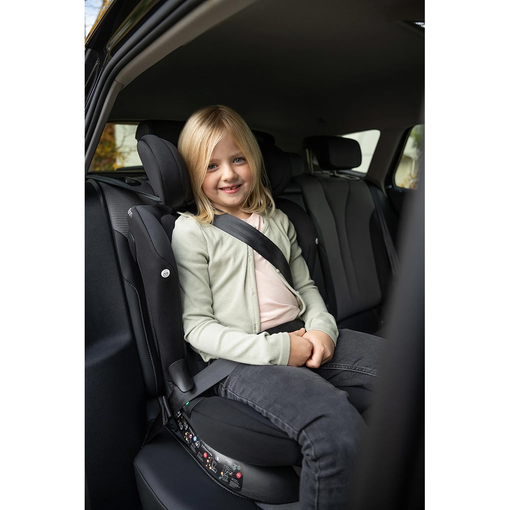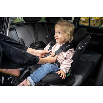 Fra 100 cm anvendes bilens 3-punktsele. Den integrerede 5-punktsele kan nemt gemmes væk i stolen, når nakkestøtten hæves, så der skabes ekstra plads.