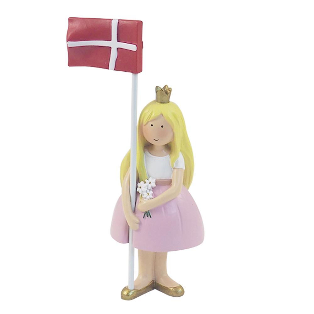 Pynt fødselsdagsbordet med den fine håndmalet prinsesse med aftagelig Dannebrogsflag fra KIDS by Friis.