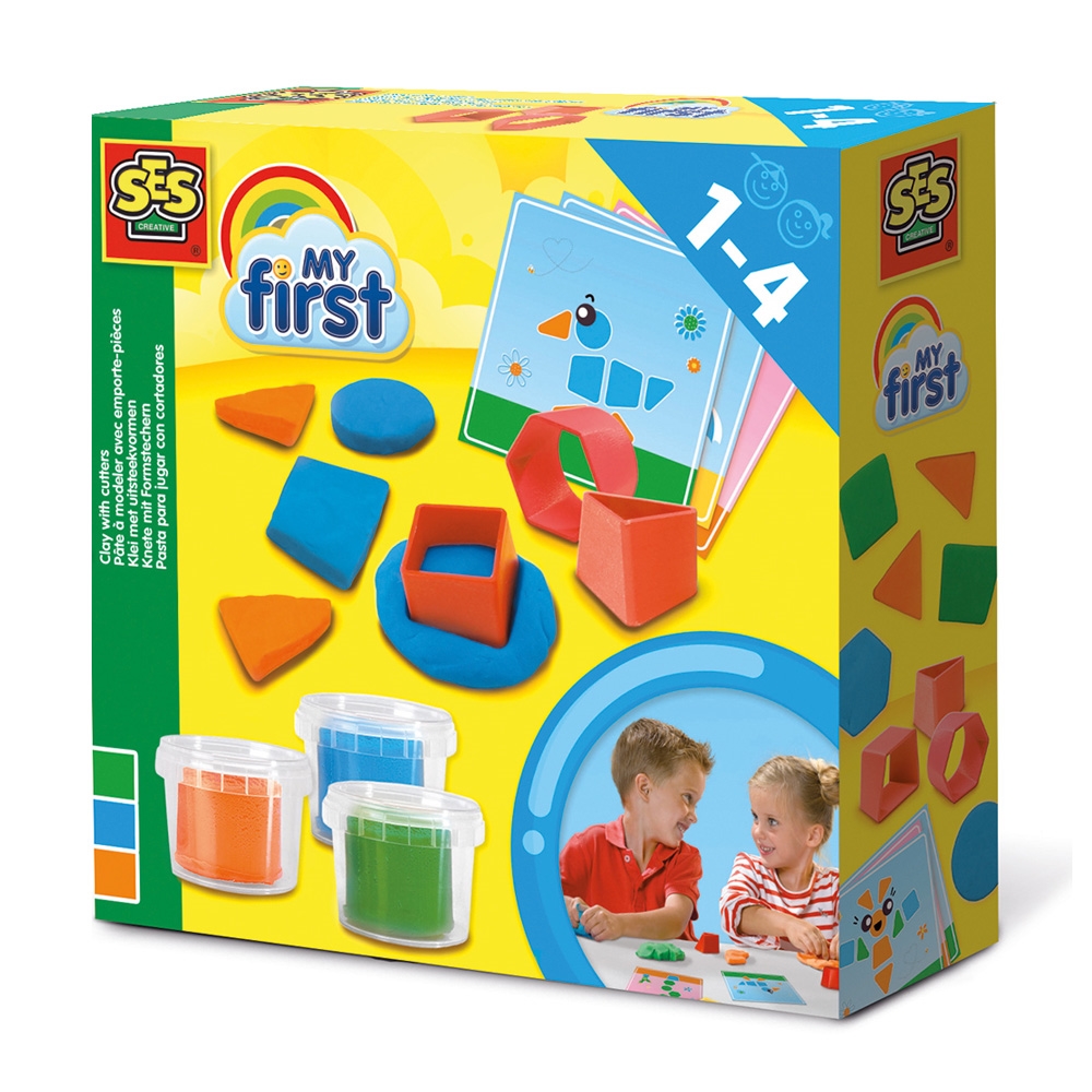 • Indehold: 3 udstikkere, 3 dobbeltsidede eksempelkort og 3 bøtter med superblødt modellervoks i klare farverne grøn, orange og blå.