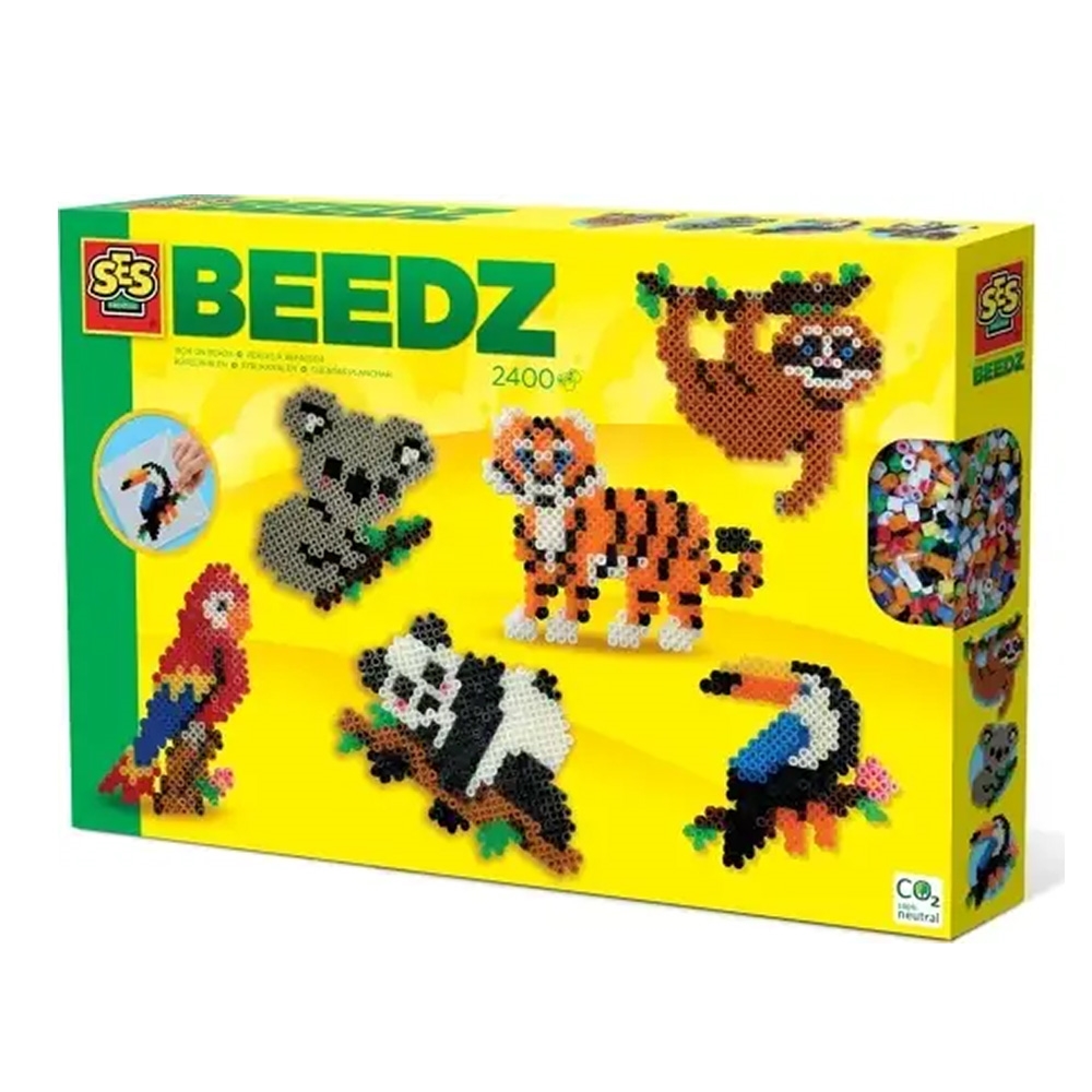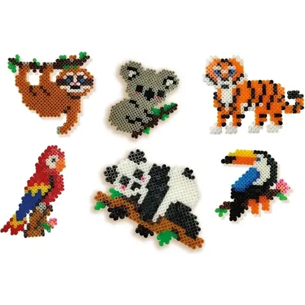 Du kan lave de sejeste jungledyr med dette sæt med SES Beedz perler, som kan stryges på pladen! Du kan lave en glad tukan, et dovent dovendyr, en farverig papegøje, en livlig tiger, en sød koalabjørn og en panda, som spiser.
