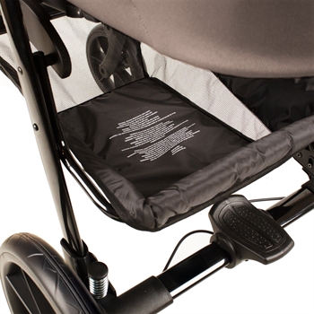 Klapvognssædet leveres med vatteret fodpose og sele. Sædet kan ligges helt ned til vandret position og har 3 indstillings positioner i ryglænet.