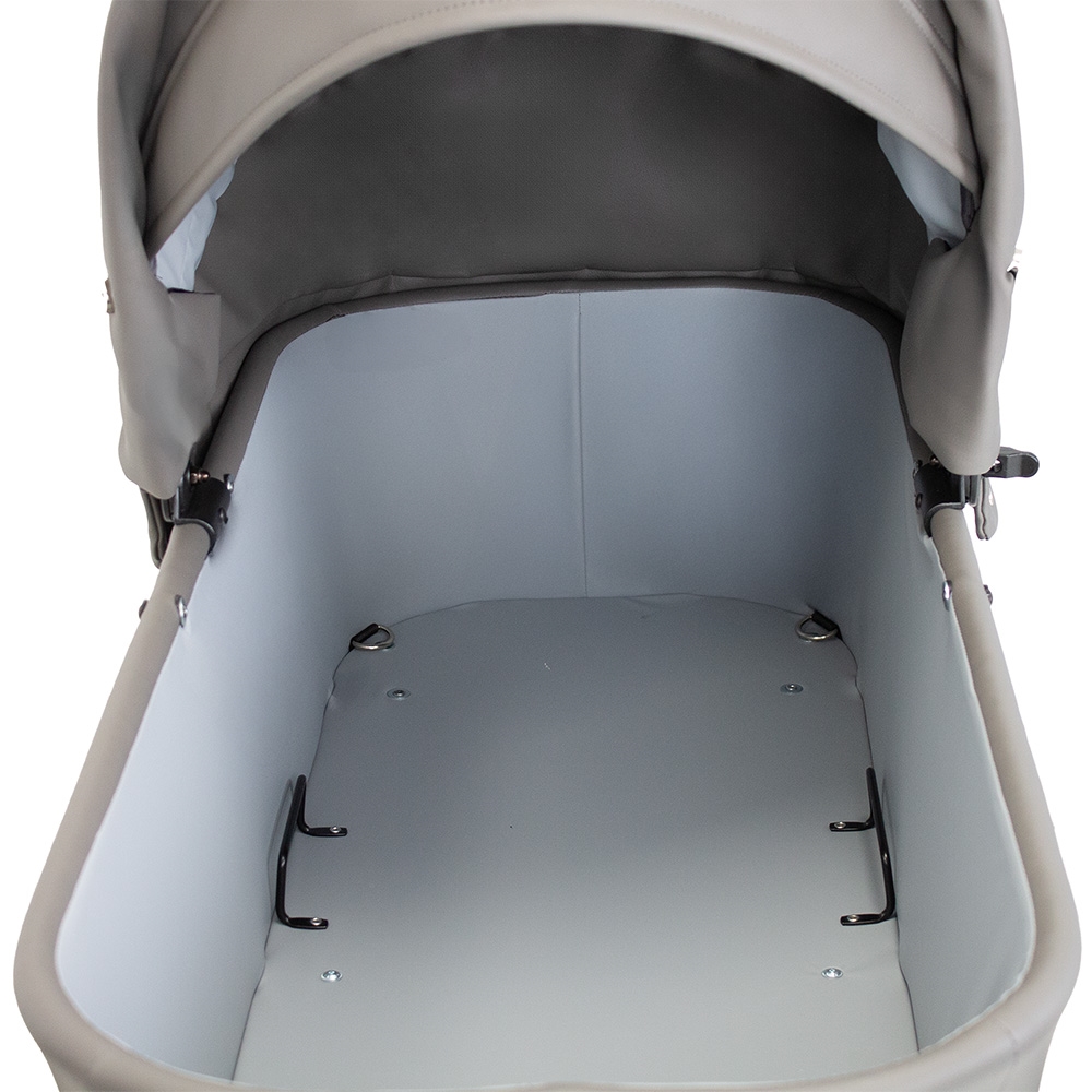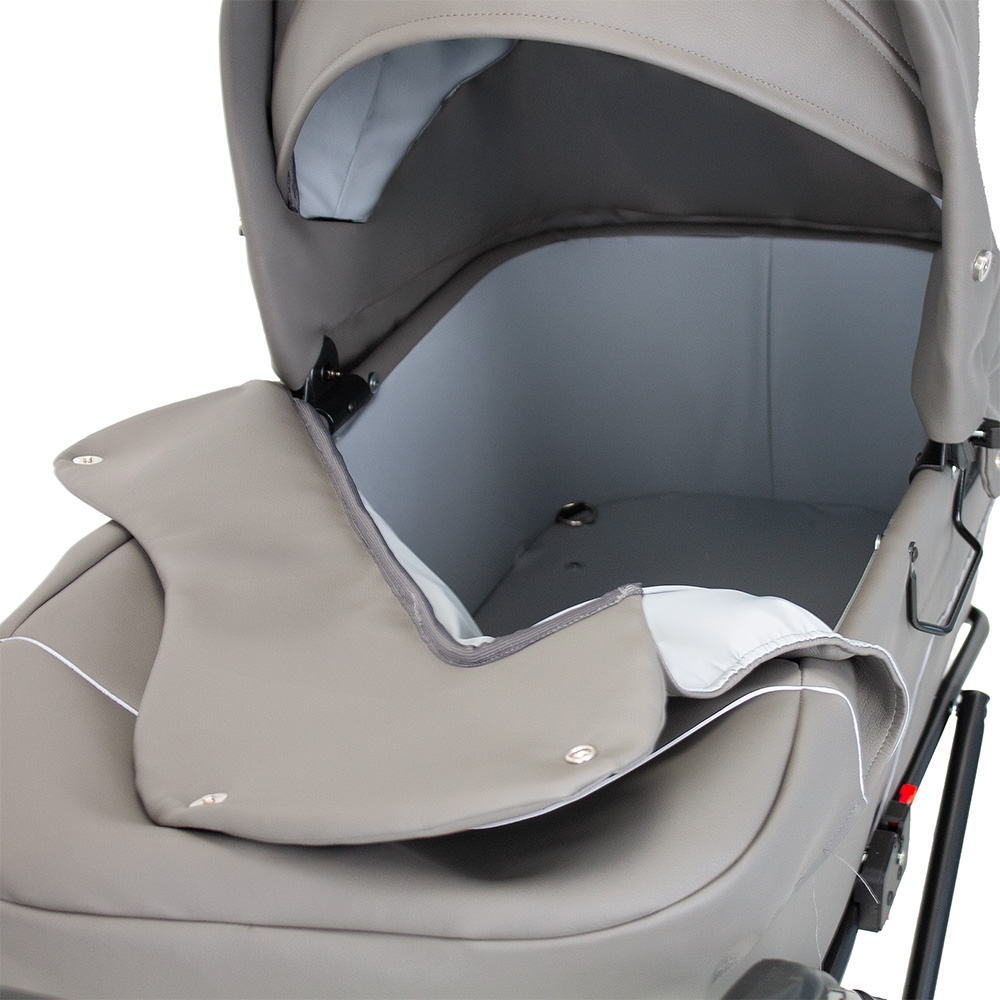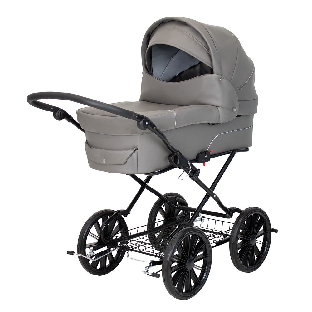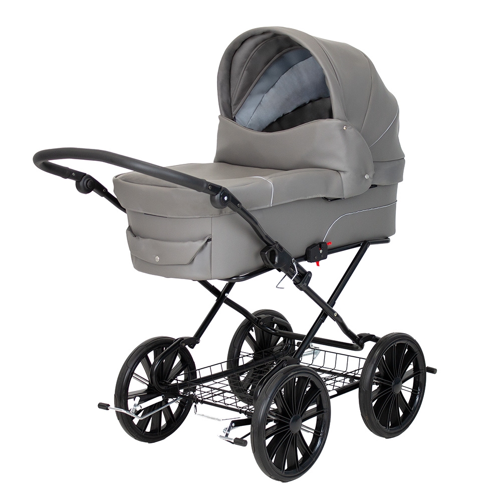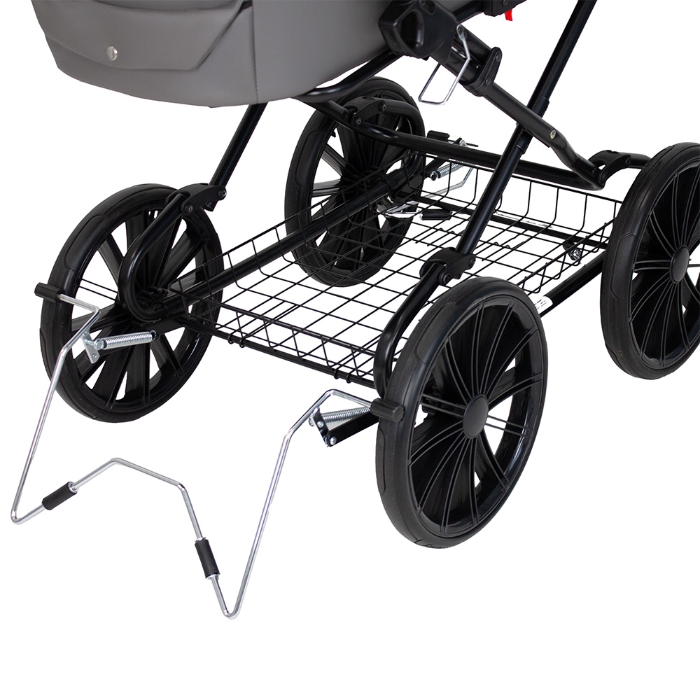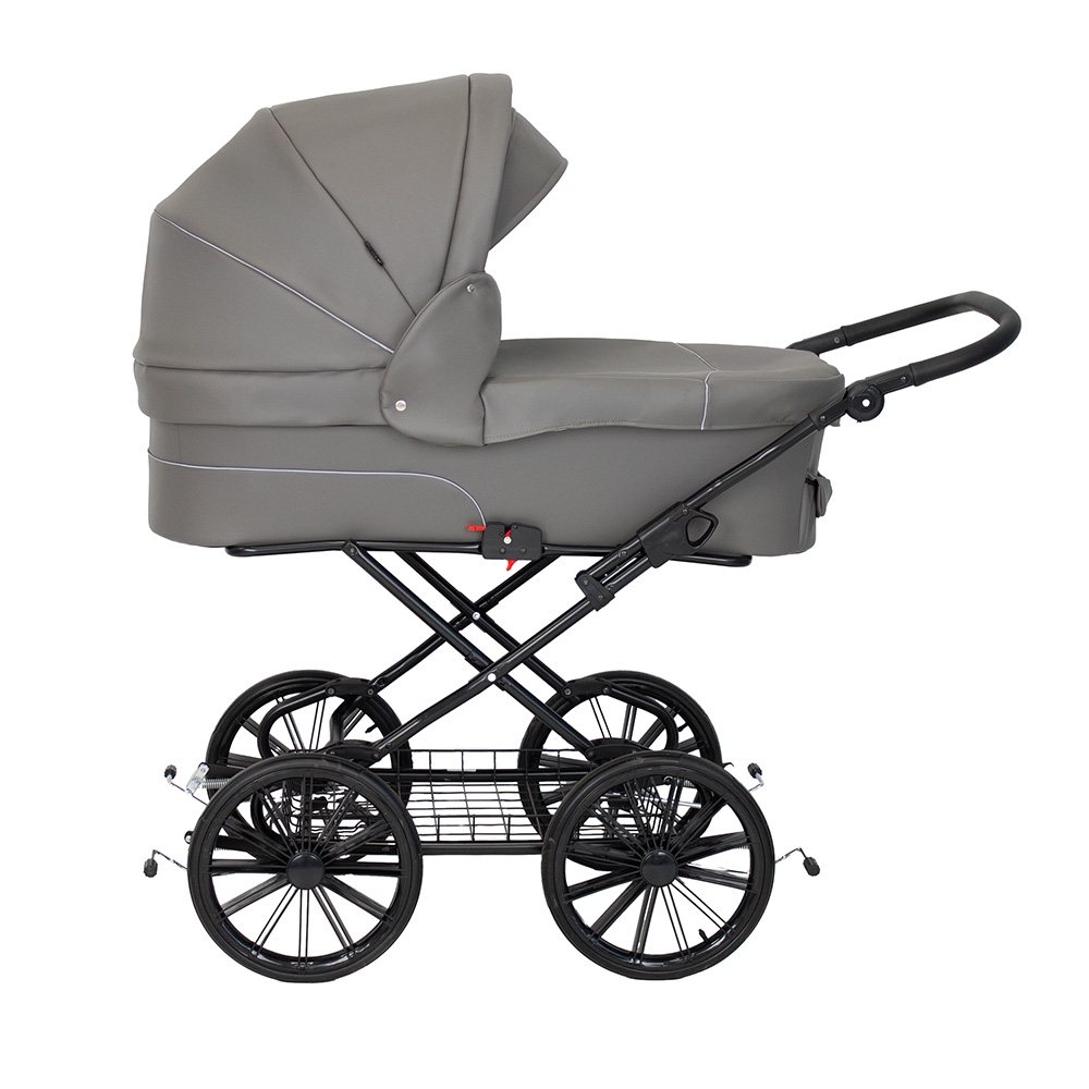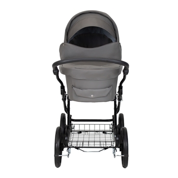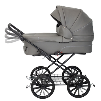 En rigtig flot, stor og robust barnevogn i et gennemført klassisk design. Vognen har mange smarte finesser og sikkerhedsdetaljer. Fx er stellet monteret med sikkerhedslås, og der skal derfor 2 uafhængige bevægelser til at klappe stellet sammen. Klapvognen er udstyret med ergonomisk og justerbart styr, dobbelt støttefodbremse, fuld understøttelse af barnevognskassen, en solid og ventileret bund samt støddæmpende 14" luftgummihjul m. kugleleje. Vognen bliver som standard leveret med massive hjul, men kan leveres med lufthjul i stedet.
