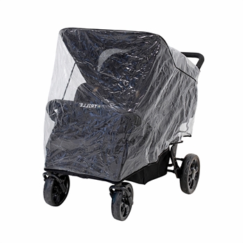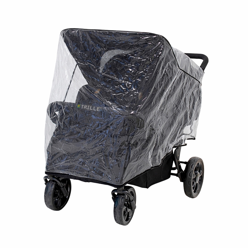Efterlad aldrig dit barn uden tilsyn i barnevognen og lad ikke regnslaget dække dit barns ansigt